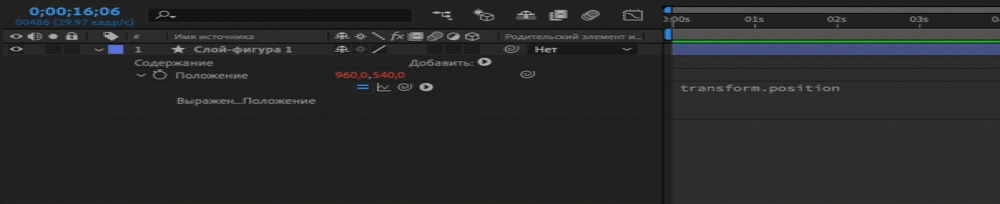 Наконец, справа от четырех кнопок отображается параметр transform.position выражения по умолчанию. Для изменения выражения щелкните его текст на таймлайне, чтобы активировать поле редактора выражений. Оно поддерживает те же функции, что и любое другое текстовое поле, например, копирование, вставку, выбор и перетаскивание текста. При нажатии на клавишу ввода создается новая строка, высоту которой можно изменить. Нажмите на нее и введите нужное выражение, например wiggle(3,50). Дополнительные сведения см. в разделе Управление выражениями.